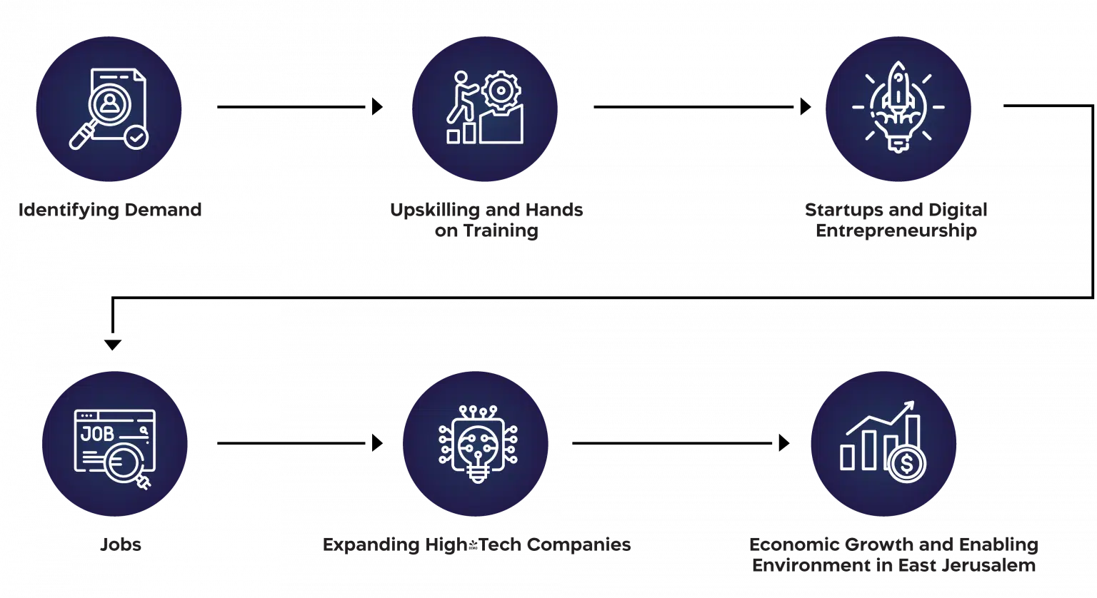 With activities that aim to facilitate an enabling environment for the growth of Tech talent, skills, entrepreneurship and attracting Multinational Tech companies to expand and utilize the talent pool in East Jerusalem, Sigma Labs JRS works on the supply side with Tech graduates and candidates to build, train, and upskill a strong pipeline of Hi- Tech experts in East Jerusalem, in different areas of demand and cutting edge technologies, accompanying the candidates in building technical skills as well as employability skills and needed language skills.
