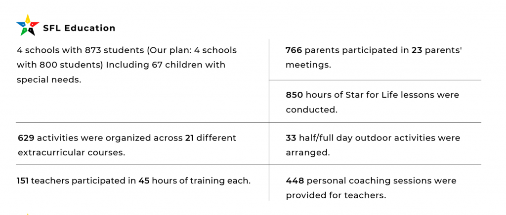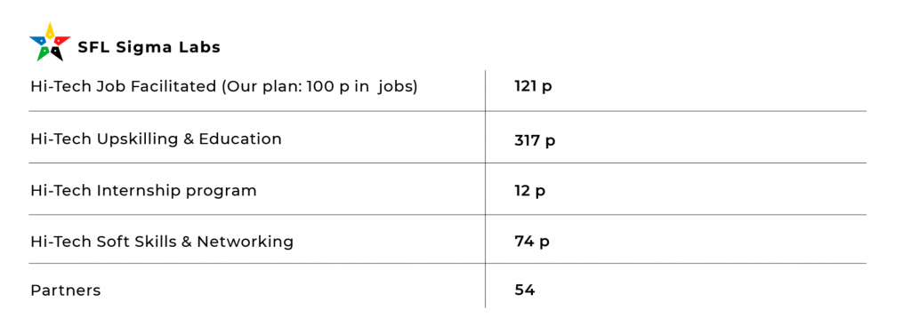 Our plan is that after five years run Star for Life Education in 40 schools with 11 000 students. In SFL Job Hub are goal during five years is to facilitate 3000 jobs and in SFL Sigma Labs our goal during five years is to facilitate 1000 IT-jobs.